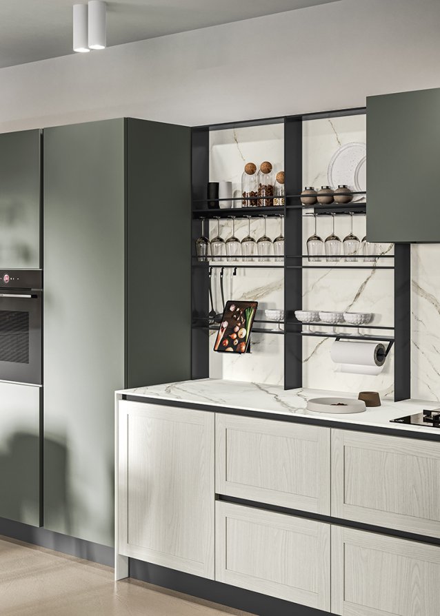Ma Prime non è solo una cucina: si integra armoniosamente con il living, creando una continuità fluida tra gli spazi abitativi. Vivi l'eleganza senza tempo in ogni istante della tua vita.Dettagli di stile