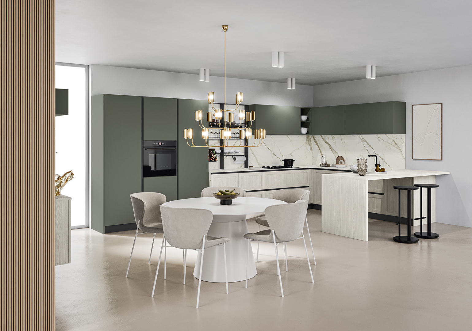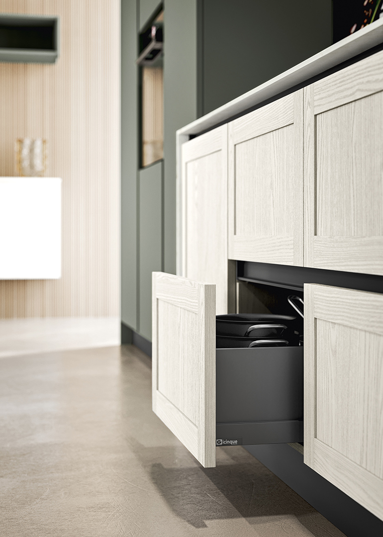 Ma Prime non è solo una cucina: si integra armoniosamente con il living, creando una continuità fluida tra gli spazi abitativi. Vivi l'eleganza senza tempo in ogni istante della tua vita.Dettagli di stile